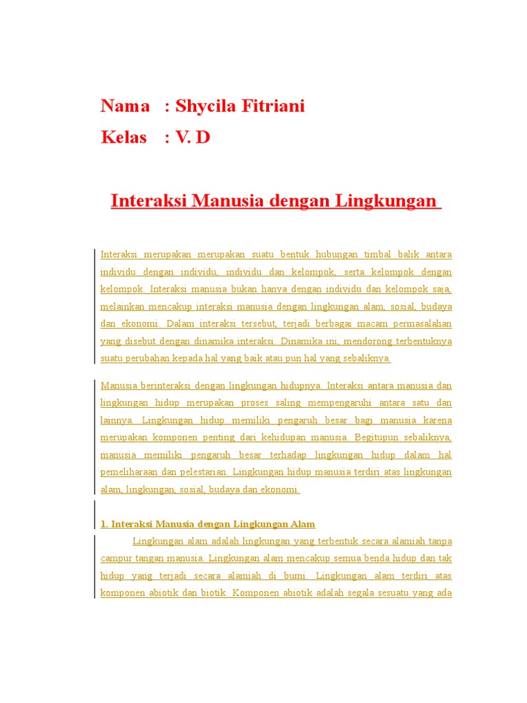 Kunci Jawaban Tema 6 Kelas 5 Halaman 38 40 41 42 43 44 45 46 Laman 11 Heart Id from heartle.b-cdn.net Manusia tidak dapat hidup tanpa mengandalkan lingkungan alamnya. Pertama, lingkungan alami adalah lingkungan alam yang sudah ada tanpa adanya campur tangan manusia. Lingkungan hidup manusia terdiri atas lingkungan alam, lingkungan, sosial, budaya dan ekonomi. Manusia dan lingkungan hidup (alam) memiliki hubungan sangat erat. Manusia tidak dapat hidup tanpa mengandalkan lingkungan alamnya. Manusia tidak akan pernah sanggup hidup tanpa mengandalkan lingkungan alamnya, sebab dari hal yang sederhana yaitu air dan oksigen, merupakan sumber kebutuhan utama. Setiap hari, manusia akan melakukan berbagai interaksi dengan lingkungan alam di sekitarnya. Lingkungan hidup dapat dikatakan merupakan bagian dari kehidupan manusia.