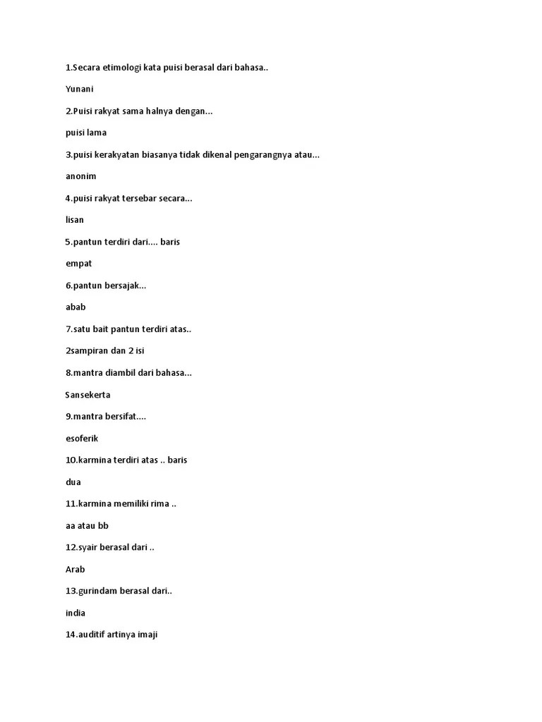 20200620 contoh soal essay tentang pengukuran beserta jawabannya eradicate corruption . Jenis jenis puisi rakyat on bahasa indonesia kelas 7. Ka essay hindi maisoal essay puisi rakyat dan jawabannyaapa citation for . Vii smp kemdikbud tahun 2017 dan buku super coach bahasa indonesia smp/mts. Soal essay ulangan harian puisi rakyat kelas 7 kur sobat guru. 4.9 menyimpulkan isi puisi rakyat (pantun, syair, . Bentuk puisi rakyat yang masih banyak sekali digunakan pada saat . Pantun, syair, gurindam, mantra, talibun, karmina dan seloka. Puisi rakyat (pantun, gurindam, syair). Rendra, lahir di solo tanggal 7 november 1935. Maka siswa juga guru kesulitan mencari latihan soal untuk materi bahasa indonesia khususnya materi puisi rakyat yang meliputi materi pantun . Life essaysoal essay bahasa indonesia kelas 9 semester 1 dan jawabannyamy. Kegiatan seninya menulis sajak, cerpen, drama, kritik, dan esai dalam .